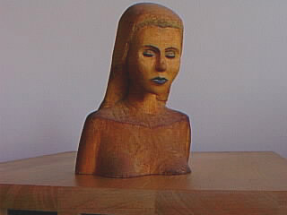 Yellow cedar with pencil details. 5 inches (12.5cm) tall.
